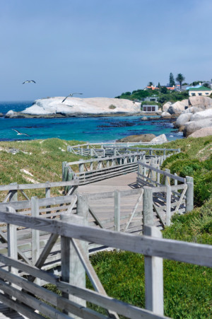 Und dabei kommen sich die Beiden immer weider in die Quere. Die meisten Menschen sind zwar völlig begeistert von den kleinen Gesellen, das heißt besonders die Besucher, die extra wegen der Tiere nach Boulders kommen. Diejenigen aber, die in der Nähe von Boulders leben, sehen das Zuammenleben mit den Pinguinen kritischer, denn die Vögel sind laut und hinterlassen auf ihren Wanderungen durch die Gärten der Menschen sogar in Simon´s Town ihren übel riechenden Kot. Und auch die Pinguine mögen es gar nicht, wenn man sie in ihren Höhlen oder Nestern stört und wenn die Menschen um sie herum zu laut sind. Damit die Brillenpinguin-Kolonie in Boulders geschützt leben kann, wurde Boulders zum Teil des Table Mountain National Parks erklärt. Über Stege kann man die Tiere dort, wo sie leben und brüten gut erreichen und sie von den Stegen aus auch beobachten.